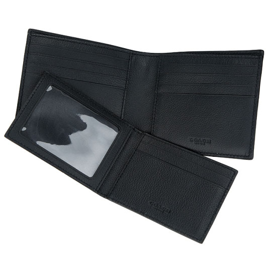 Coach Men Men Wallet In Gift Box Compact Id Wallet In Sport Calf Leather Black # F64118