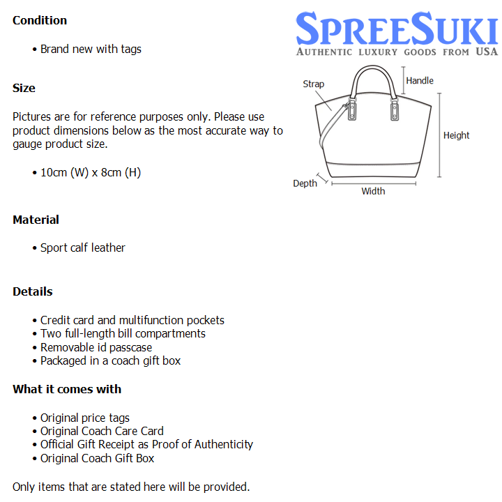 All our products are 100% authentic and purchased from Coach stores in USA. We are a reputable registered business in Singapore and it is illegal to sell counterfeit goods in Singapore. This product also comes with a gift receipt which is printed by the Coach store that we purchased the item from. It states the item that we purchased and the Coach store that it was purchased from, proving the authenticity of the item. Buy with confidence.