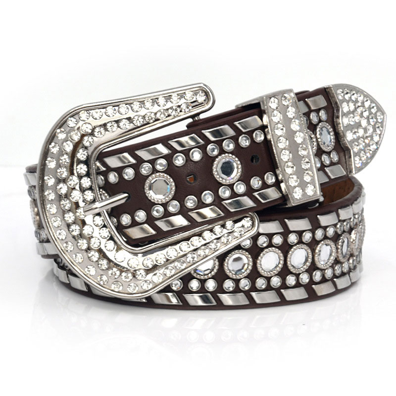 Manufacture New Designer Custom Rhinestone Diamond Stone Red Pu Leather Crystal Dna Belt Multi Color Choice For Men And Women