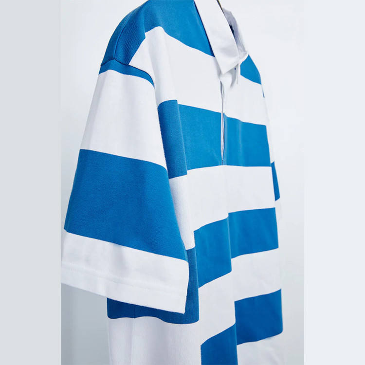 PL510 Custom wholesale oversized wide stripe fashion short sleeve rugby polo shirt for man
