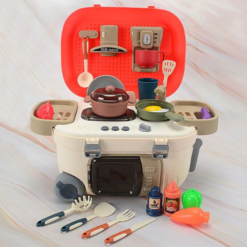 HYG Kitchen Toys Cooking Toys 79PCS Children's Kitchen Toys Baby Family Spray Kitchen Suitcase Storage Kitchen Toys Small Kitchen Toy Set Simulation Spray Toys Sink Running Water and Other Kitchen Acc