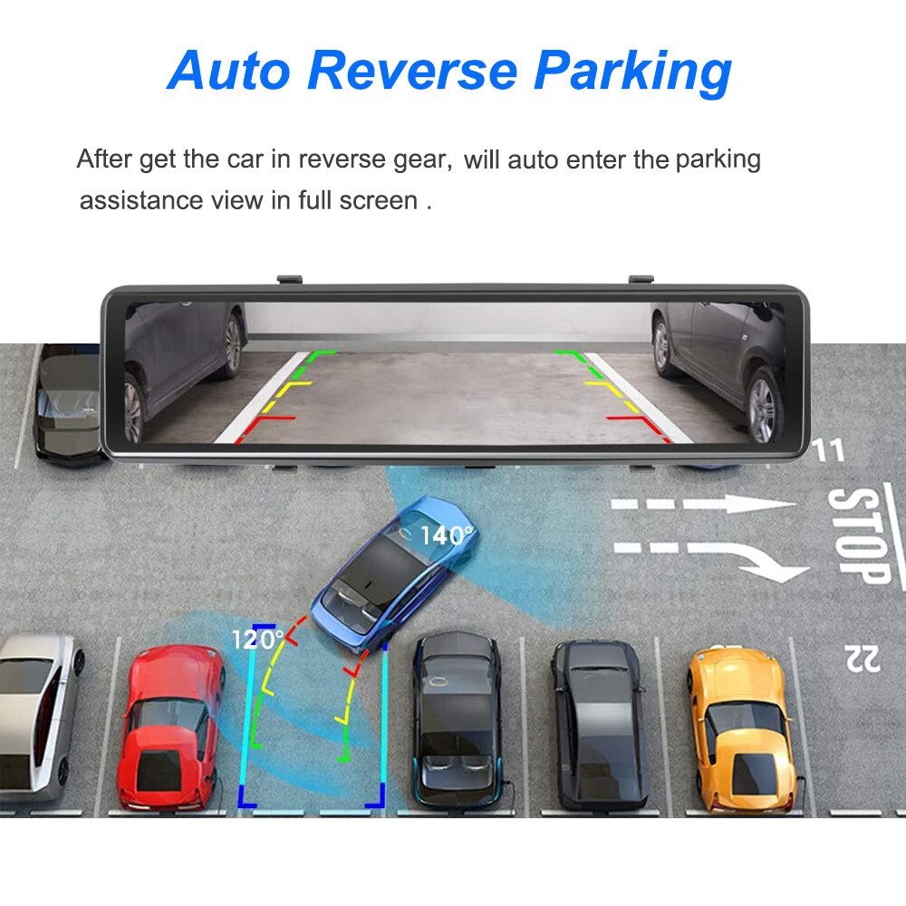 When you get your car in reverse gear, it will automatically switch to the rear camera image with the parking line and display it on dvr.