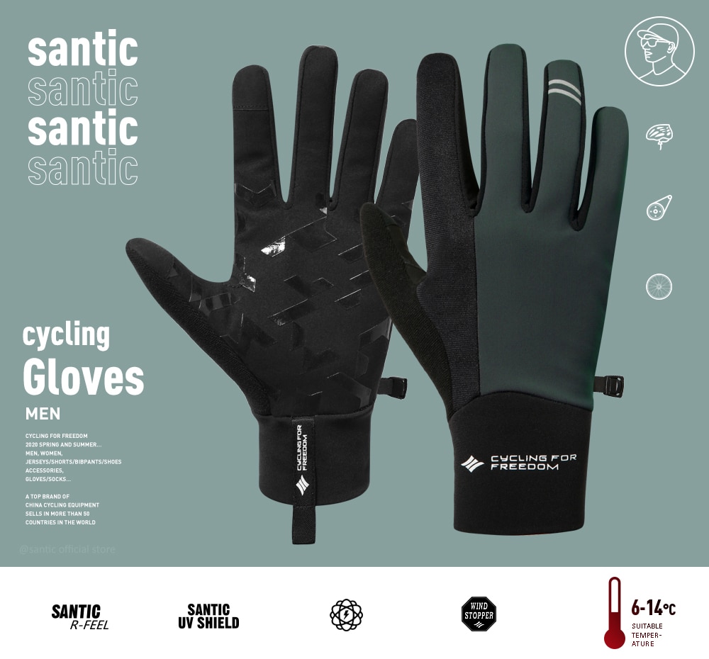Santic Cycling Gloves Winter Men Women Full Finger With Touch Function Thermal Bicycle Bike Gloves