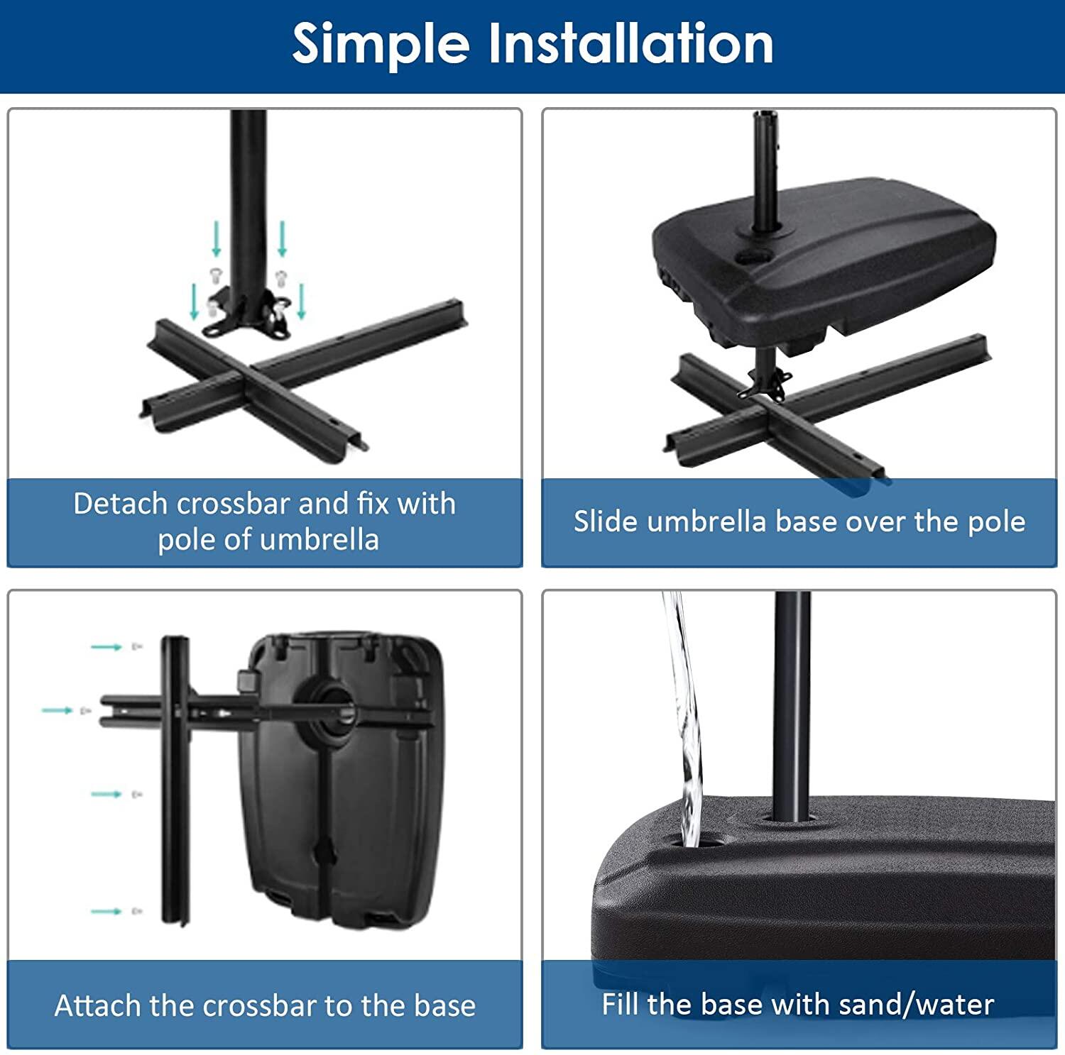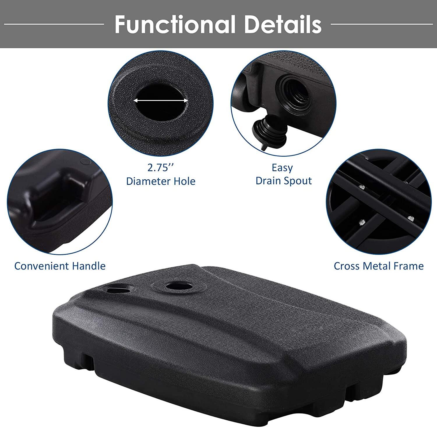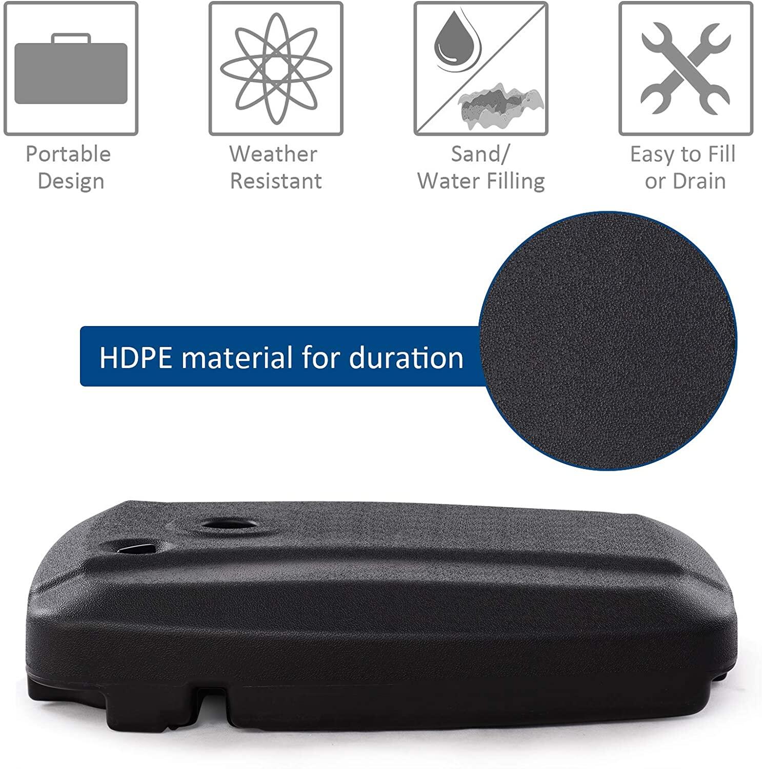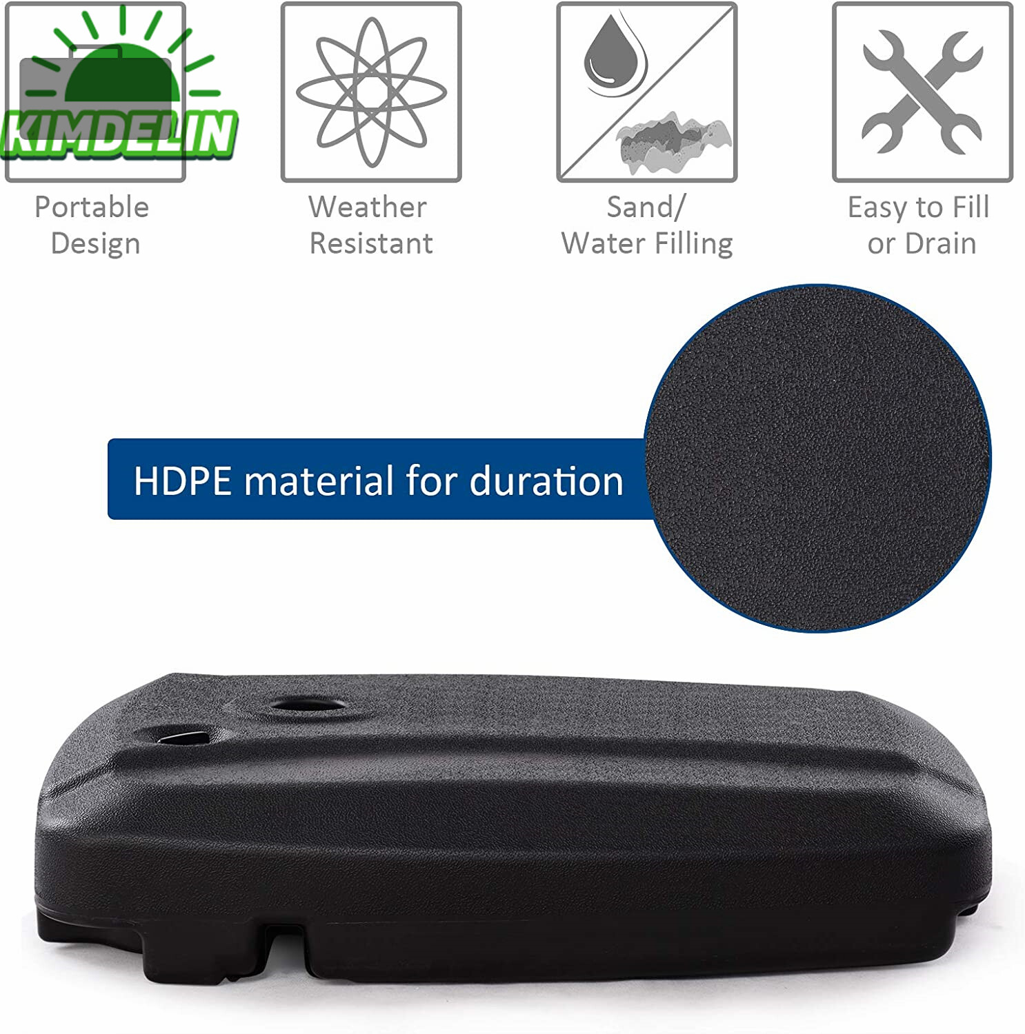 1、Durable Design: The parasol stand features the flexibility, antifreeze and low temperature resistance.2、Low Temperature Resistance: The parasol stand features slow oxidation rate, low temperature resistance, stable physical properties.3、Abrasion Resistance: The parasol stand features enhanced water filled hole, excellent plastic material, not easy to abrase.4、Smooth Design: The parasol stand features the smooth and tearing-resistant excellent materials, and it is made of excellent materials, so the hard objects are not easy to damage it.5、High Temperature Resistance: The parasol stand features the high temperature resistance and long-term sun resistance to be not easy to damage, and it features the anti-oxidation materials, long service life.Specifications(about):