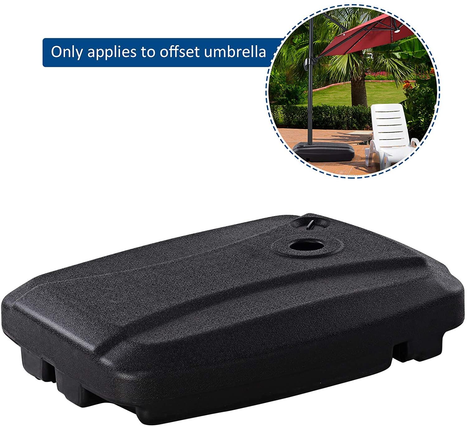 Name: Umbrella BaseMaterial: plasticWeight: 8000gProduct size: L80*W60*H16CM/31.50*23.62*6.30inProvide weight: 60KGInsert hole size: 38mm/1.50in,48mm/1.89inRecommended umbrella size height: 2.7m/,3.0m/,3.3m/Packing: boxPacking List:Parasol Stand * 1