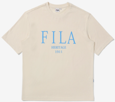 [FILA KOREA] Heritage Serif Logo Loose Fit Short-Sleeved T-Shirt Casual Men Women Tee Couple Tops Cotton Street Style Korean Fashion