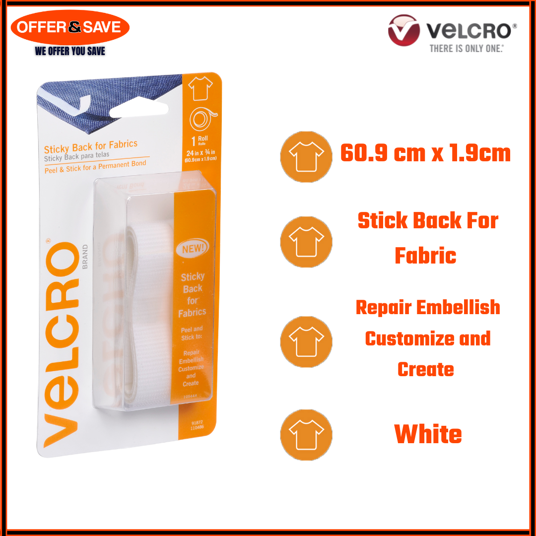 [60.9CM X 1.9CM][2.5CM X 1.9CM] VELCRO® Brand Sticky Back for Fabrics Tape