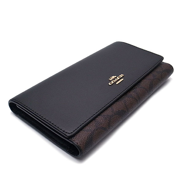 Coach Wallet In Gift Box Long Wallet Slim Trifold Wallet In Signature Canvas Brown Black # C5966