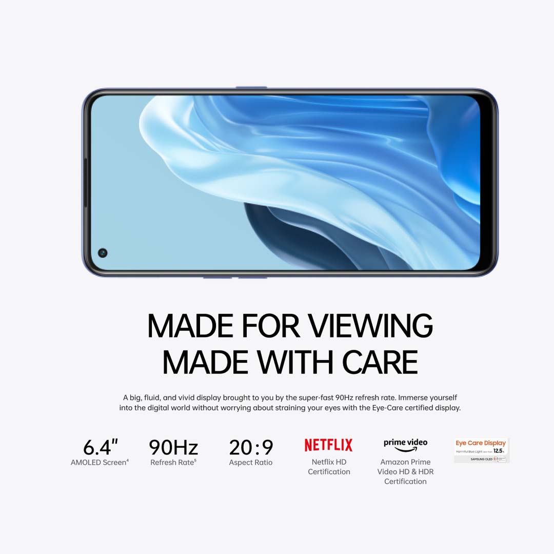 OPPO A76 / Portrait Bokeh Camera/ 90Hz Colour-Rich Punch-Hole Display/5000mAh Battery/ 6GB RAM + 128 ROM