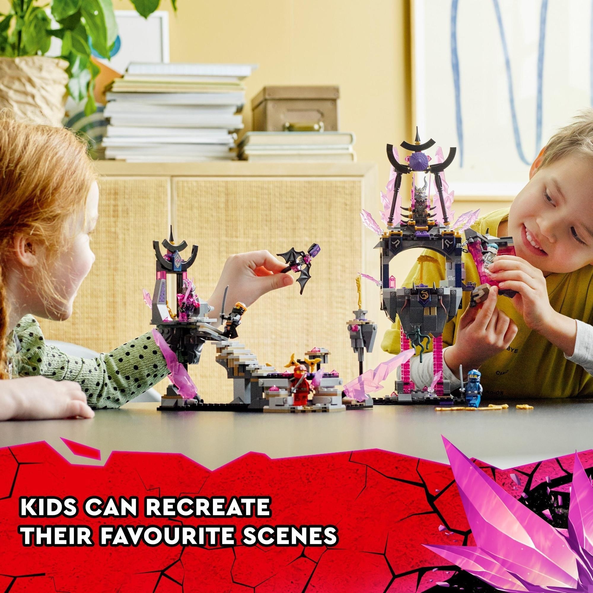 Kids can recreate thrilling scenes from the NINJAGO®: Crystallized TV series as they battle The Crystal King at his temple.