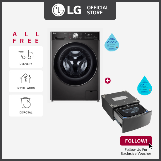 [Bulky] LG FV1411H2B 11/7KG, Front Load Washer Dryer, Black + LG Mini Washer TV2425NTWB 2.5kg Black Steel + Free Delivery + Free Installation + Free Disposal
