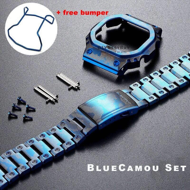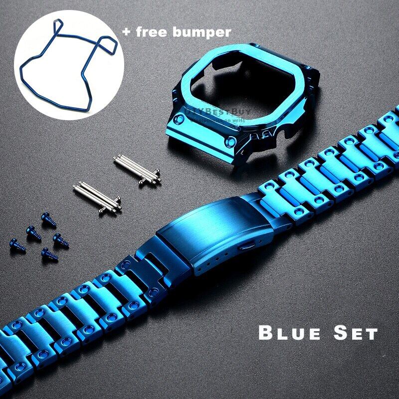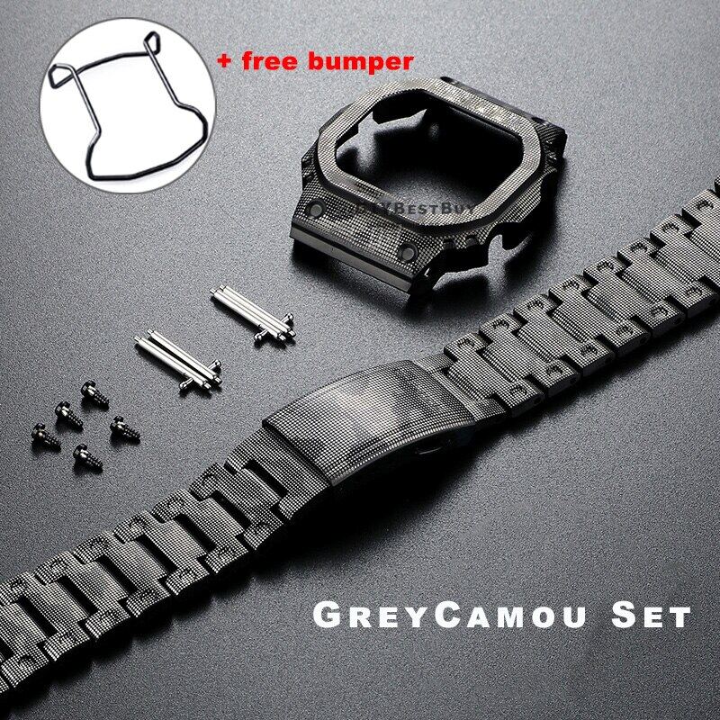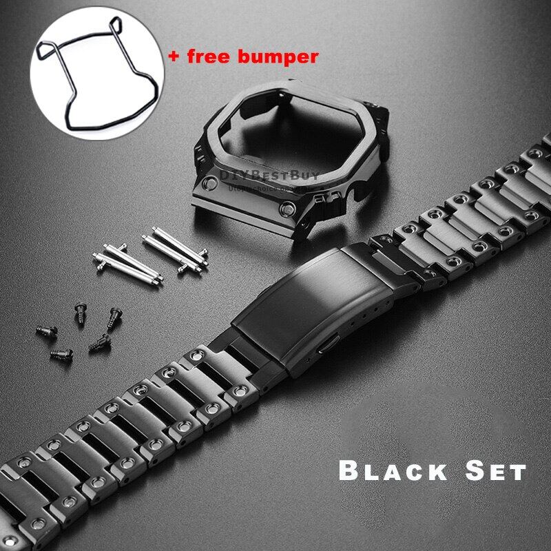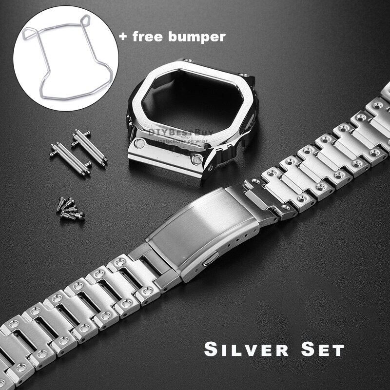 For Casioak G-SHOCK DW5600 DW5610 GWM5610 Mod Kit Metal Bezel Case Frame Band Stainless Steel Strap Replacements with Tools