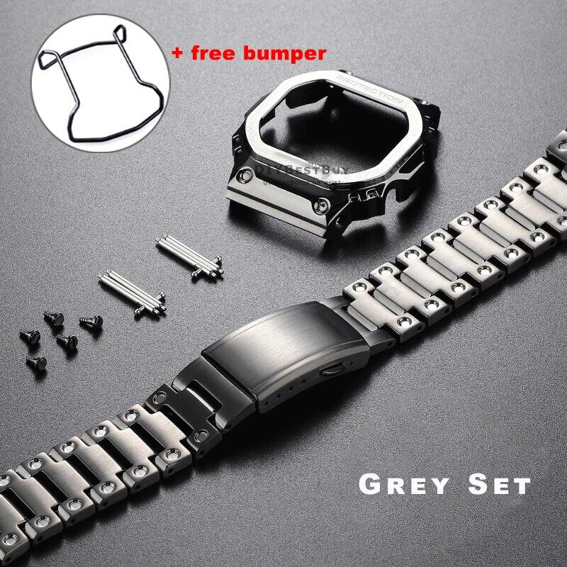 #Casioak G-SHOCK Metal Mod Kit Steel Strap & Bezel Replacements For DW5600 GWM5610