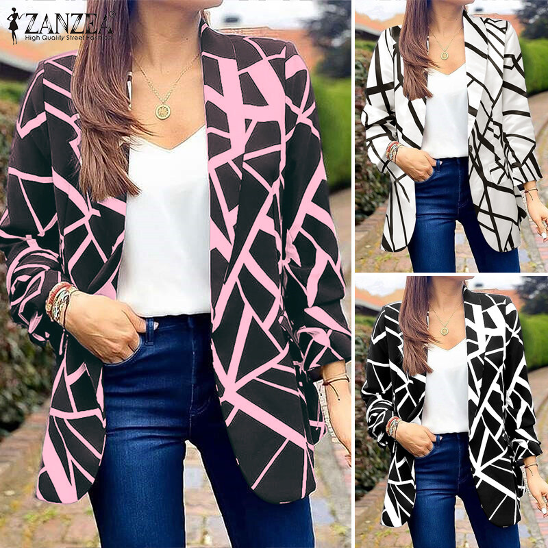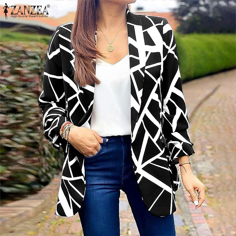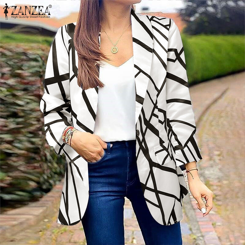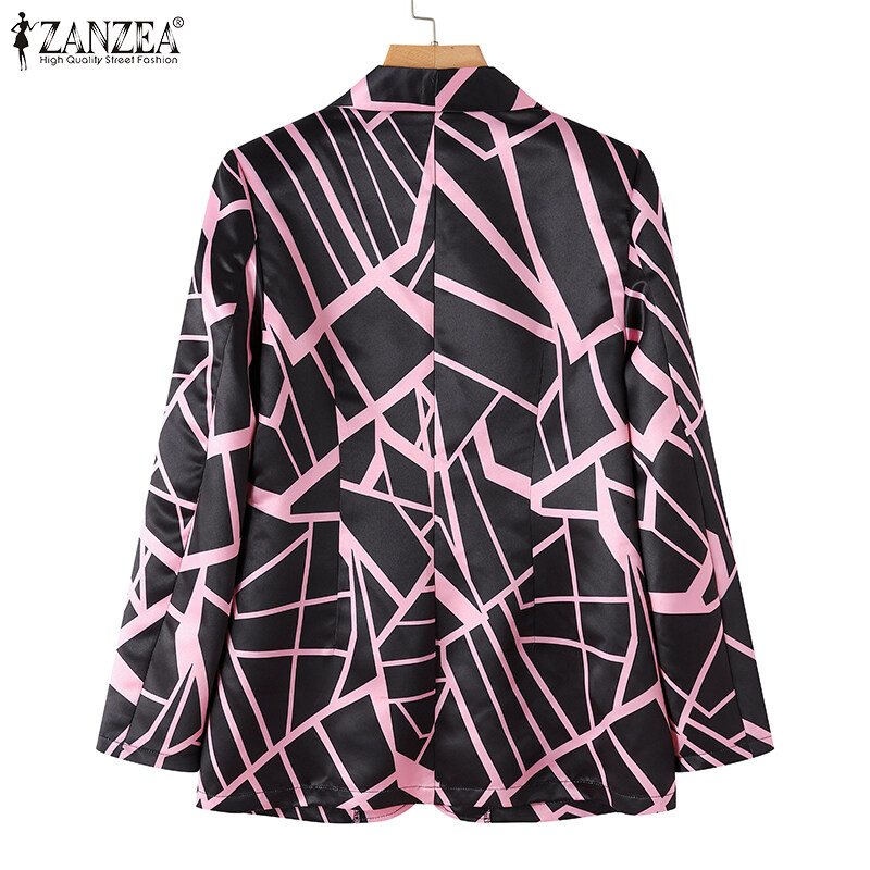 ZANZEA Women Long Sleeve Blazer Coat Lapel Collar Print Patchwork Elegant Casual Jackets #15