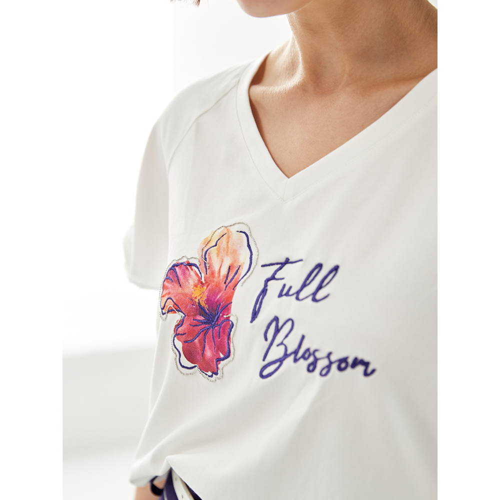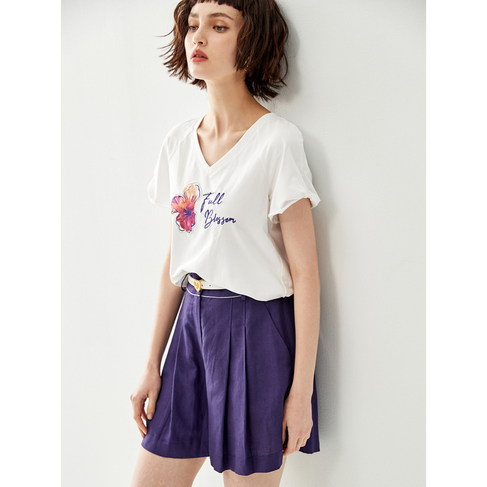 iROO Women Fashion V-Neck Basic Tee With Front Graphic Print