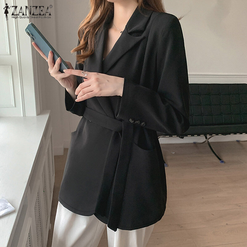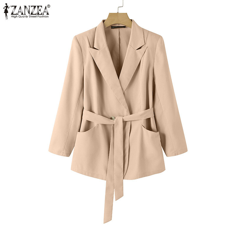 ZANZEA Womens Formal Office OL Plain Fashion Blazer Jacket Lace Up Business Overcoat #11