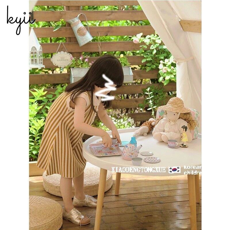 KYII Children summer girls Retro plain sleeveless Dress kyii0107