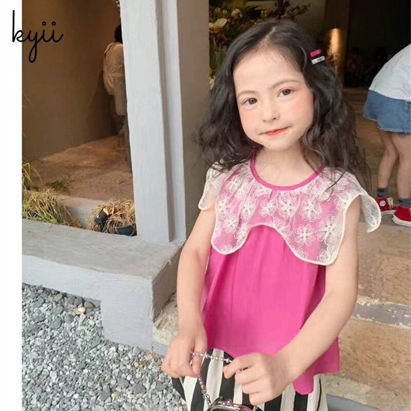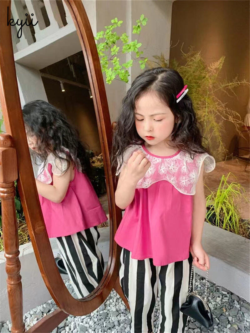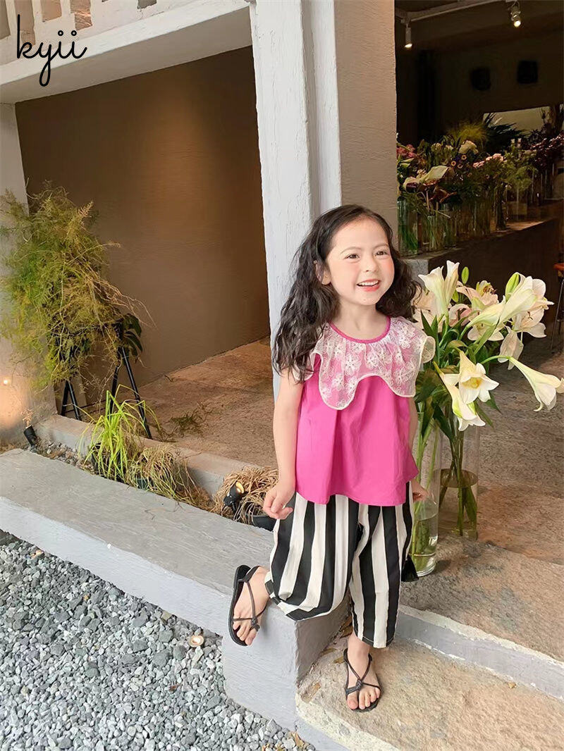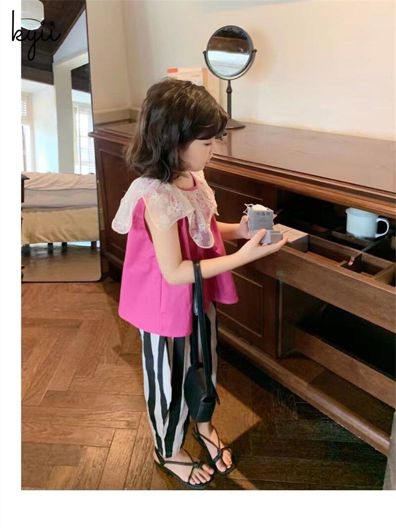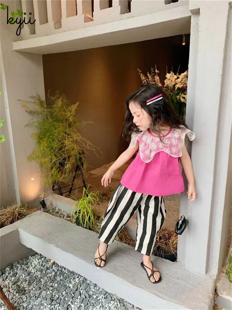 KYII Girls set two-piece Sleeveless Round-neck top children Set kyii0152