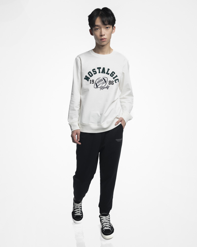 Yishion Men Solid Coloured Long Sleeve Sweatshirt with NOSTALGIC Slogan (White)