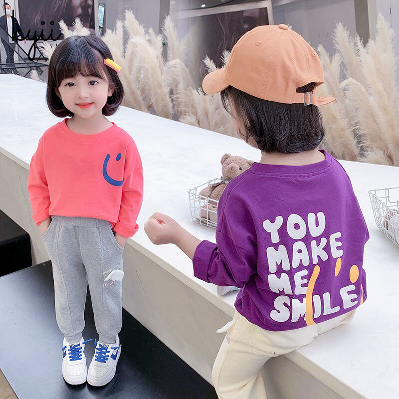 KYII Girls Long Sleeve summer children Cotton Korean Round-neck Top kyii0173