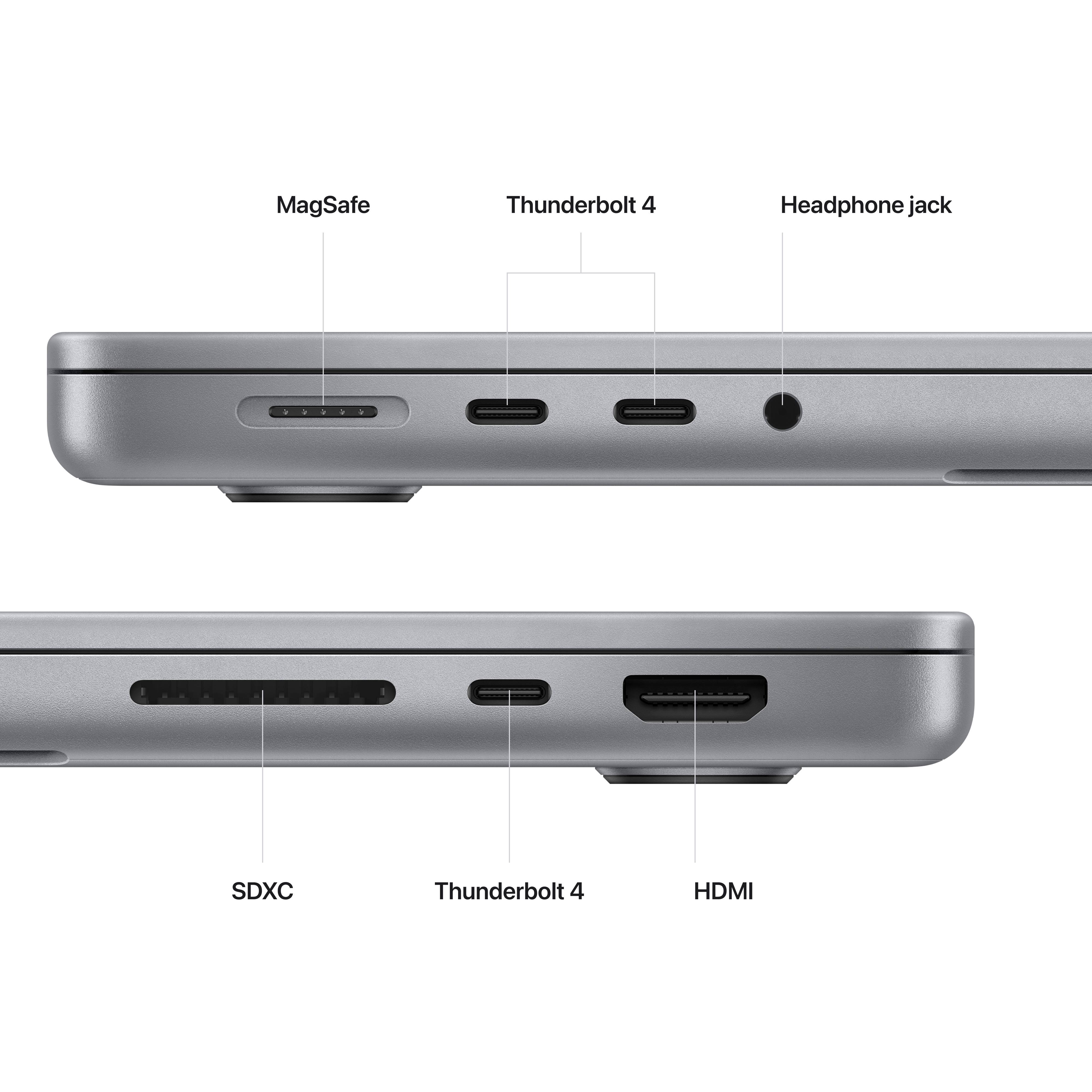 Apple 14-inch MacBook Pro: Apple M2 Pro chip with 10‑core CPU and 16‑core GPU, 512GB SSD