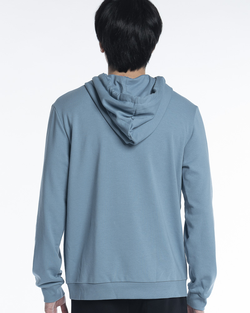 Yishion Men Solid Colour Pullover Hoodie with Kangaroo Pockets and SIMPLE Slogan Patch (Stone Blue)