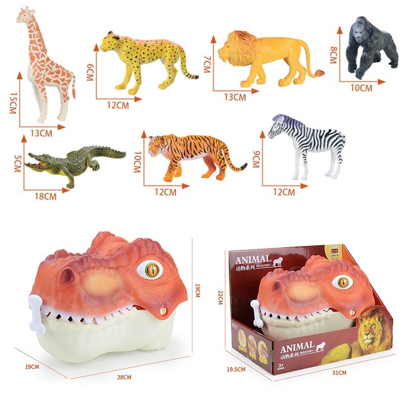 HYG Dinosaur head cover toy 16PCS Large Dinosaur Head Storage Toy Jurassic World Tyrannosaurus Rex Model Set Scene Can be a storage box kid‘s toy boy and girl gift