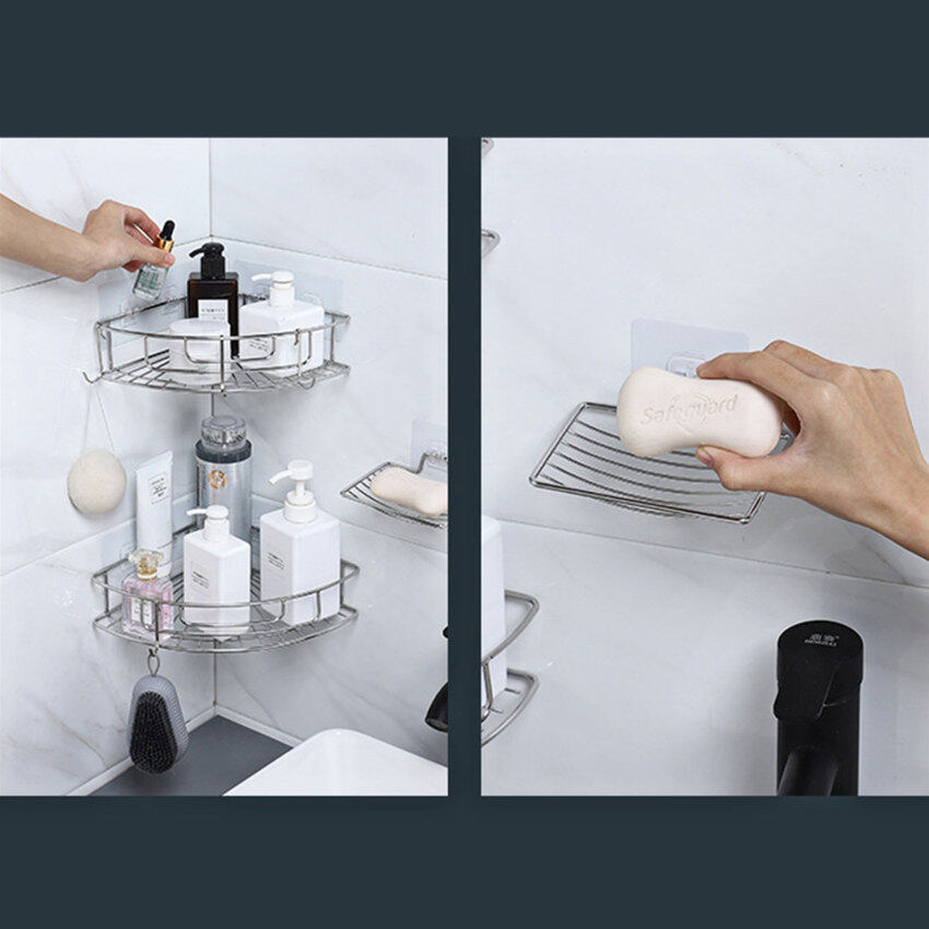 4. Two corner shower boxes will provide a large space for your bathroom or kitchen to store and organize your daily supplies. This bathroom shelf can hold up to 30 pounds of shower supplies and works great on smooth walls.