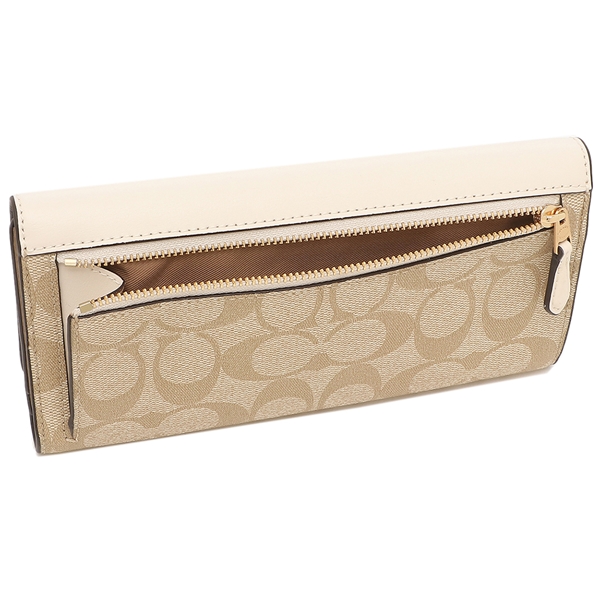 Coach Wallet In Gift Box Long Wallet Slim Trifold Wallet In Signature Canvas Light Khaki Chalk Off White # C5966
