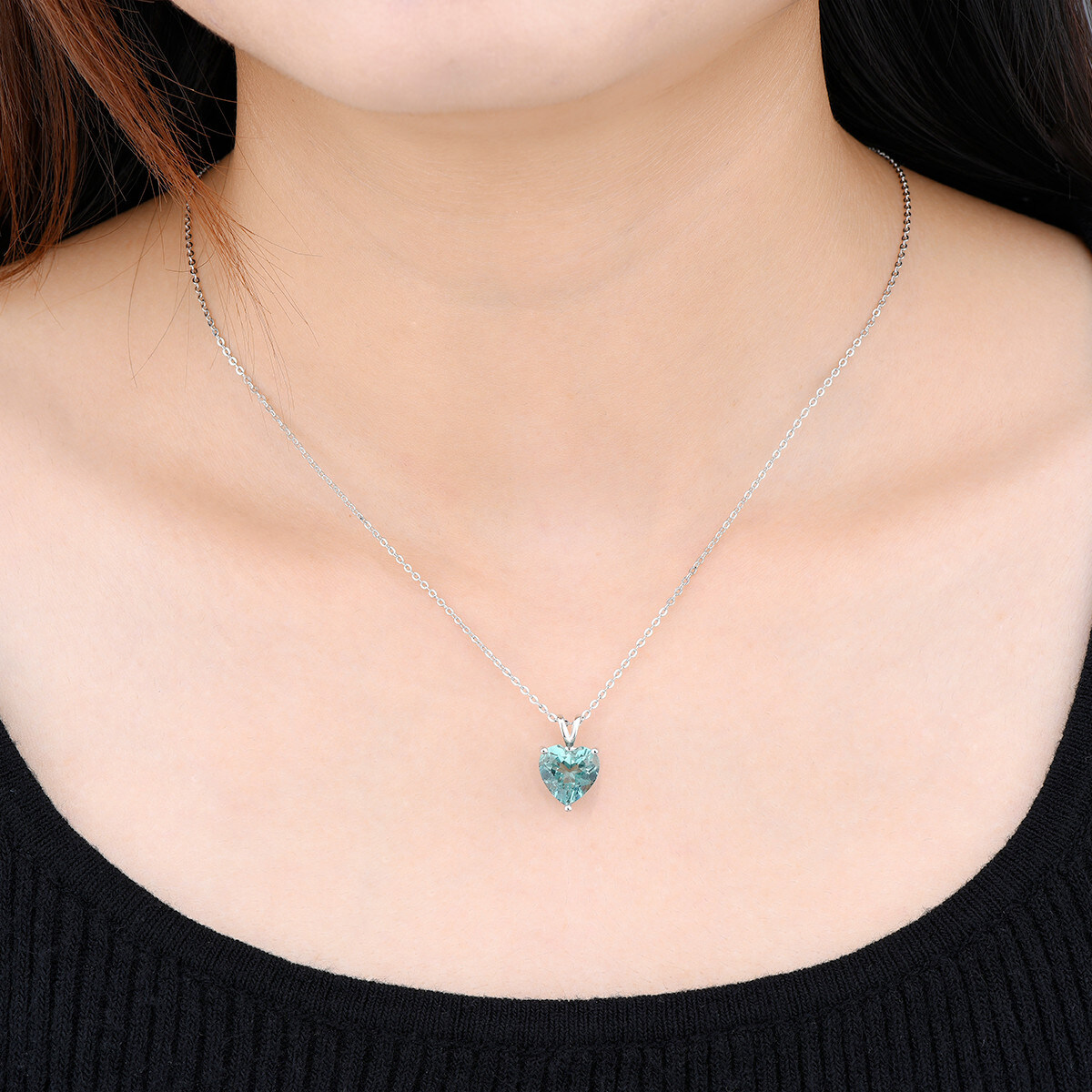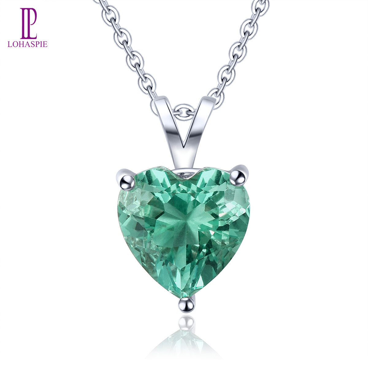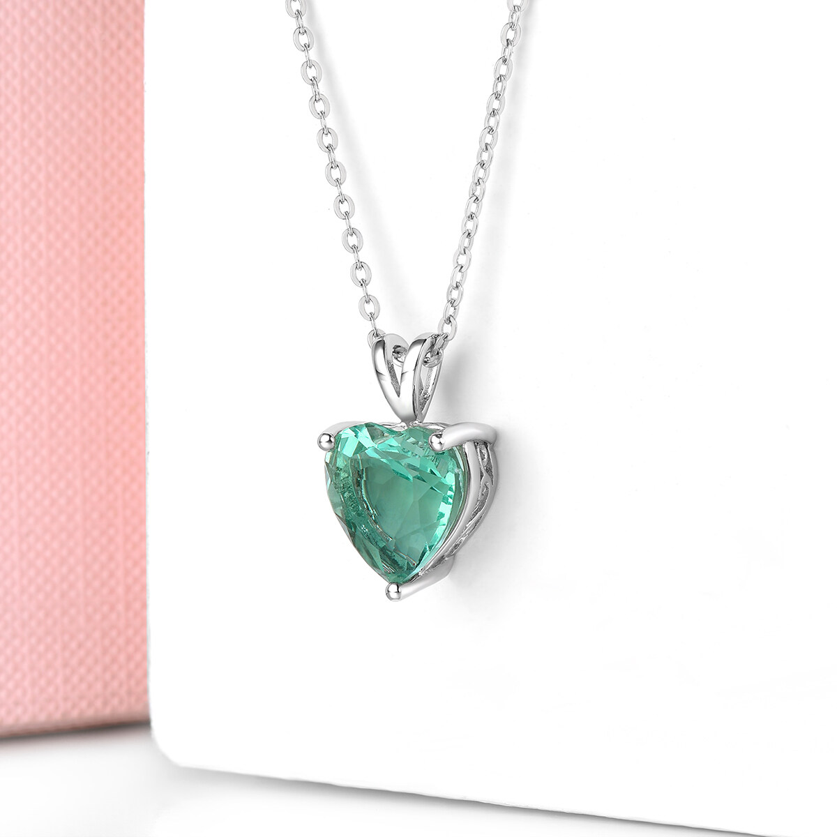 Lohaspie Jewelry Real 3.9 Carats Silver Necklace 925 Original Natural Green Fluorite Pendant Heart Cut Gemstone Pendant For Lady Birthday Gift Anniversary Gifts Jewelry