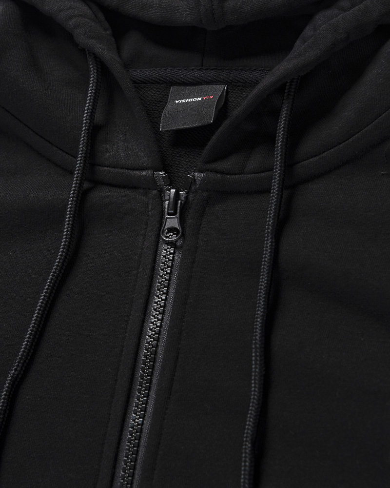Yishion Men Solid Colour Zip-Up Jacket with Kangaroo Pockets (Black)