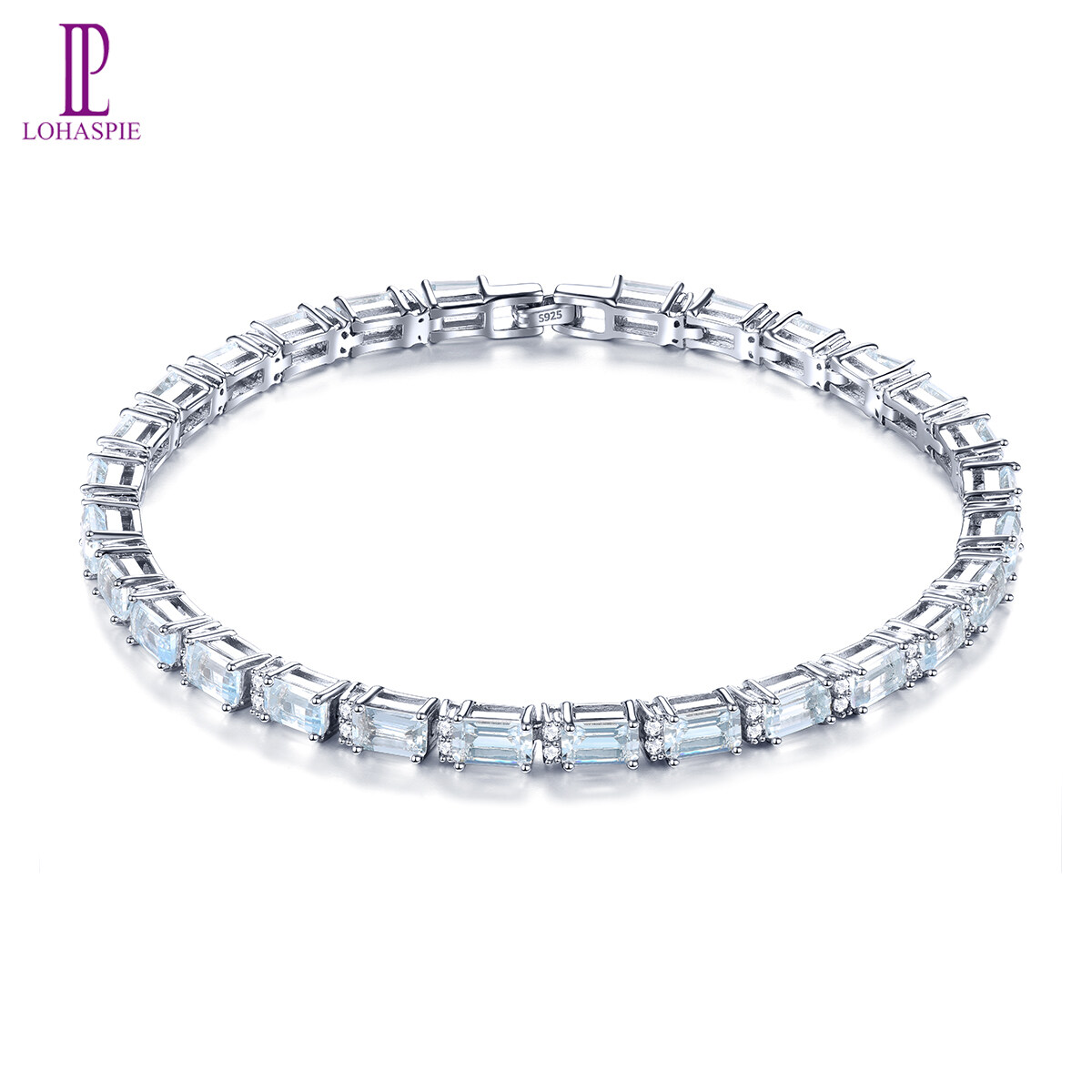 Lohaspie Jewelry Original 8 Carat Solid Sterling Silver 925 Bracelet Natural Aquamarine Bracelet Light Blue Gemstone Aquamarine Bracelet For Women Jewelry Mother's Day
