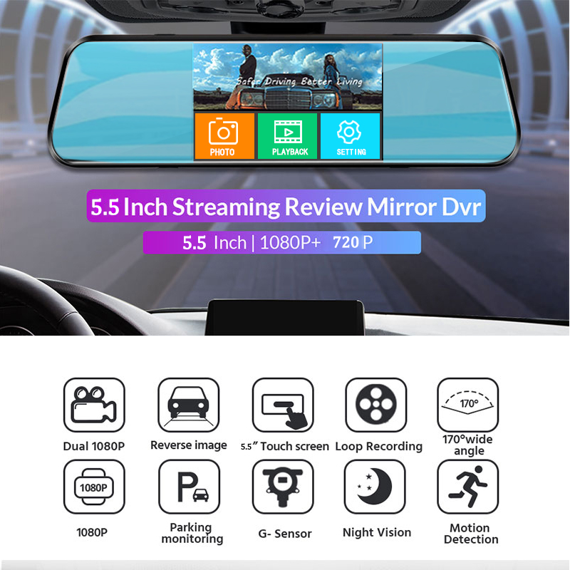 EKLEVA Car Dvr 5.5 Inch Touch Screen Video Recorder Auto Registrar Stream Mirror Support RearView Camera Night Vision Dash Cam