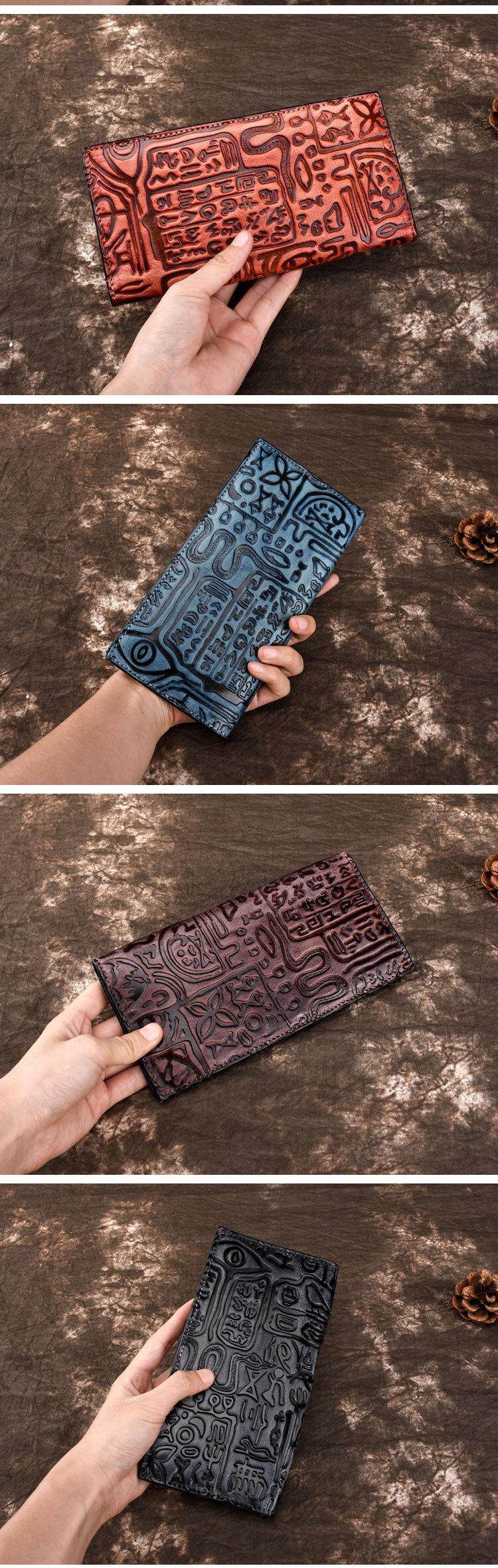 Royal Bagger Genuine Cow Leather New Fashion Women Girls Long Wallet Purse Super Hot High Capacity Retro Flower Clutch Bag Handbag Women's Multifunction Bags Casual Multi-Card Position Wallets