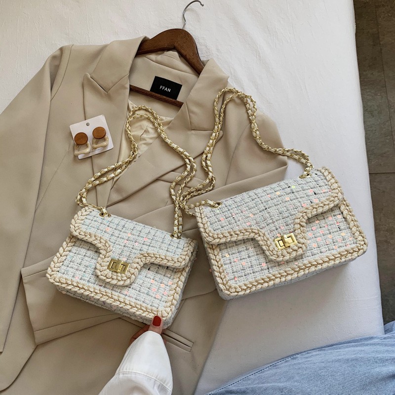 Jasmin Noir Wool Women's Chain Fashion Square Shoulder Bag